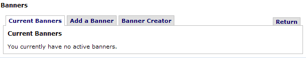 Invoice Description: This page is an itemized list of the purchases you made along with the total due. If you chose to mail in the payment, you will find the mailing address on this page as well. Please make sure to include your name, username, and business name. When you are finished click on Return to take you back to your User Control Panel. Now you can add your Banner by following the below steps.
